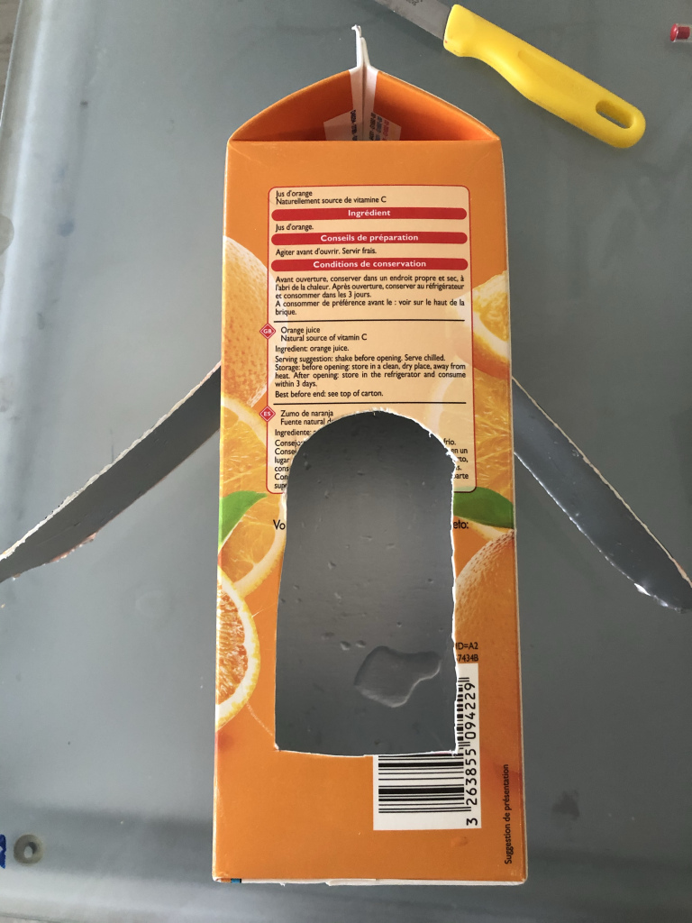 • Un récipient ( vous pouvez utiliser une bouteille plastique coupée dans la longueur)